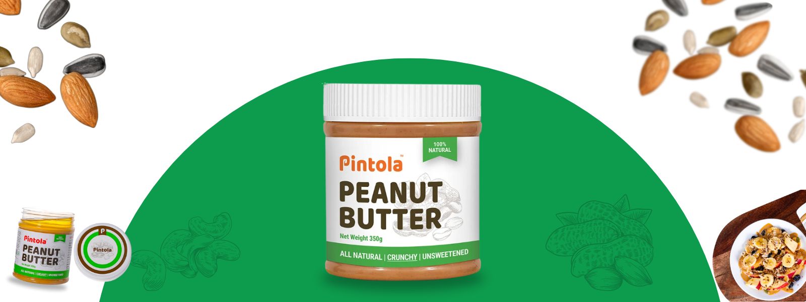 PINTOLA Original Classic Peanut Butter Crunchy 1kg – with High Protein 26g & 7.2g Fiber, Premium Roasted Nuts, Gluten Free, Zero Trans Fat, with MUFA Good Fats, Vit E & B3, Dairy Free, Just for pre order.