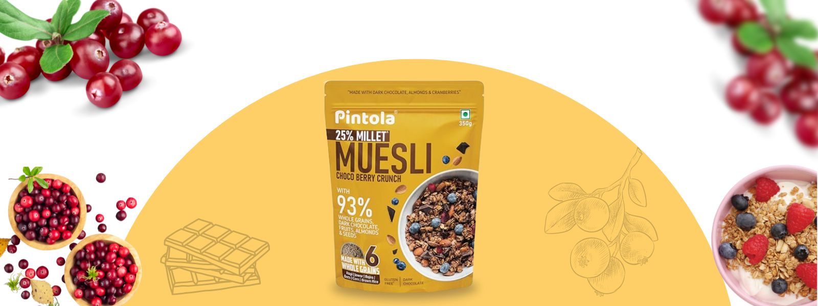 Pintola High Protein Muesli Dark Chocolate & Cranberry 1kg, 22g Protein, High Fibre, Trans Fat Free with Brown Sugar, Real Fruits, Muesli for Breakfast Food, Muselies Fruit Nuts and Seeds 1 kg. Just For Pre order