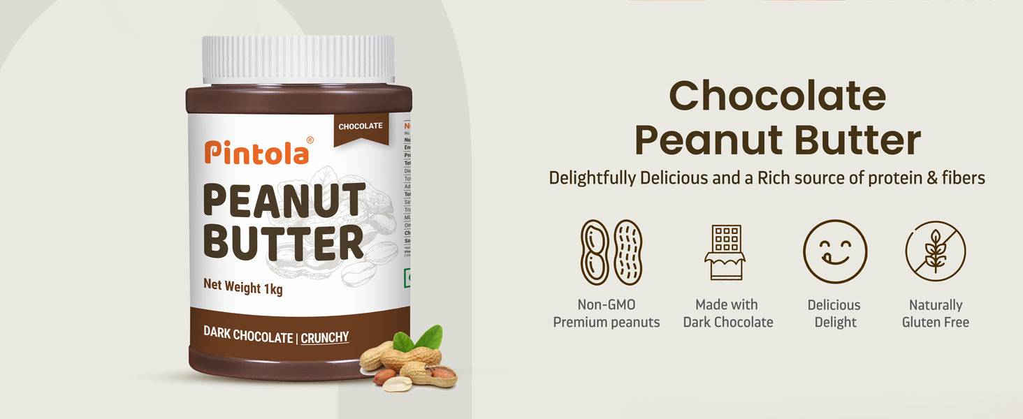 Pintola Dark Chocolate Peanut Butter is the best chocolate flavored peanut butter in India! It is irresistibly delicious and has an utterly smooth texture. No artificial colorings or harmful preservatives are used in this product.